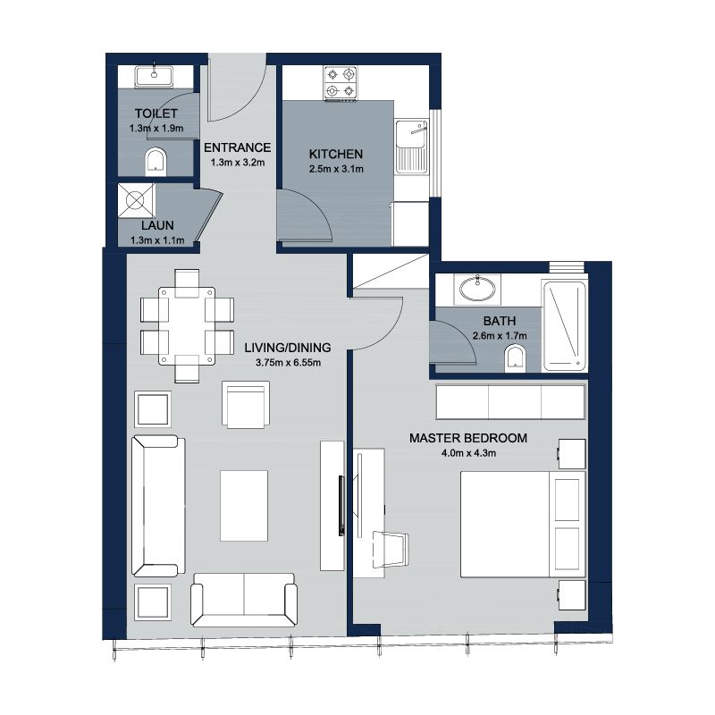 La Plage Tower has 45 floors in total, with 350 residential apartments ranging from  1, 2 and 3 bedrooms plus duplex apartments. Some of these units are built with large terraces. It also holds 2 commercial shops and 17 office spaces. Tower amenities include spacious parking slots, swimming pool for both kids and adults, separate gym for gents and ladies furnished with new and modern equipment. The tower is equipped with 24/7 security staff to monitor safety of the premises and its residents.