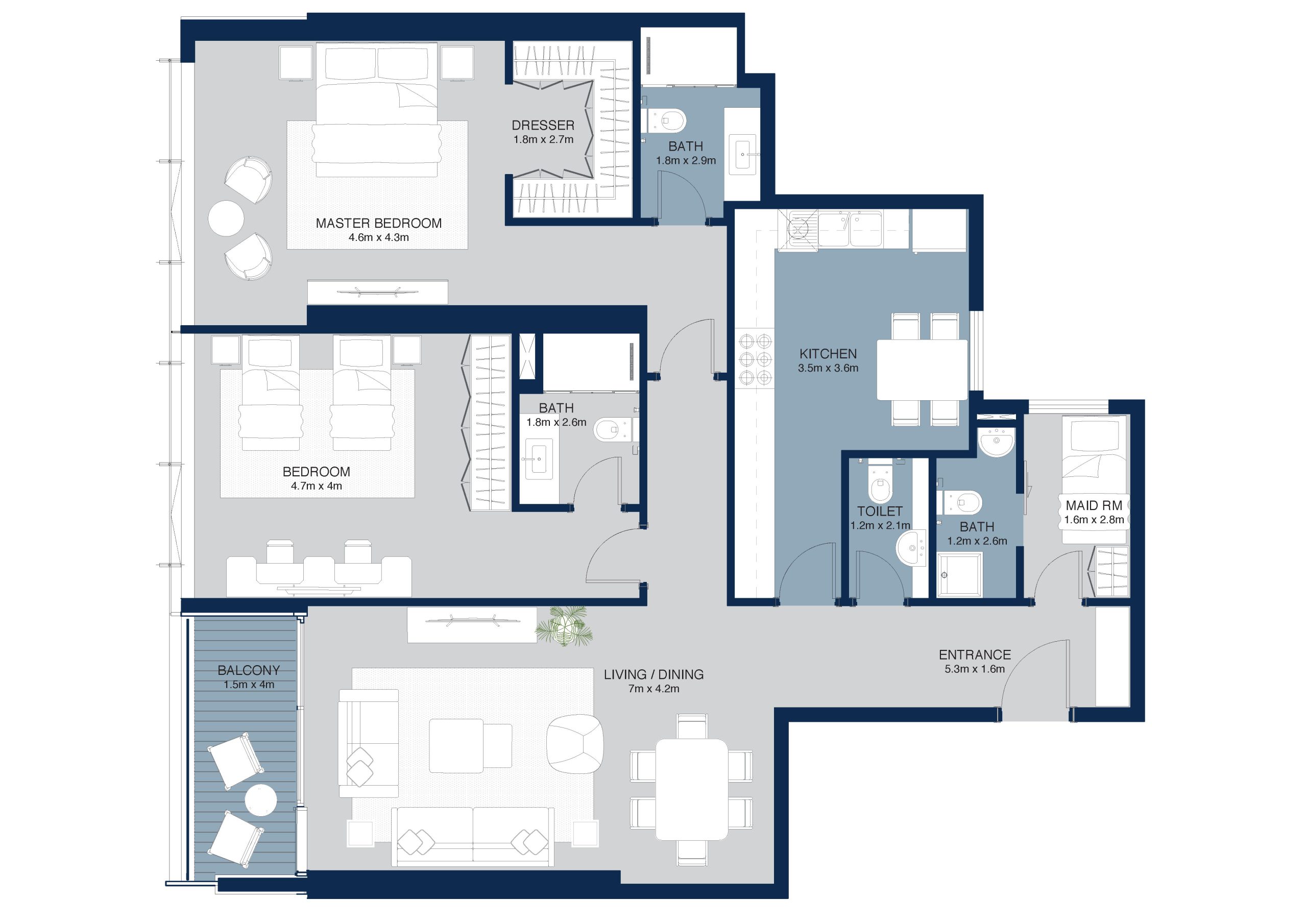 This unit type is available in 33rd – 45th Floor. This stylish 2-bedroom combines practicality and charm, featuring a modern closed kitchen, ensuite master bedroom, and a layout that balances shared and private spaces beautifully.