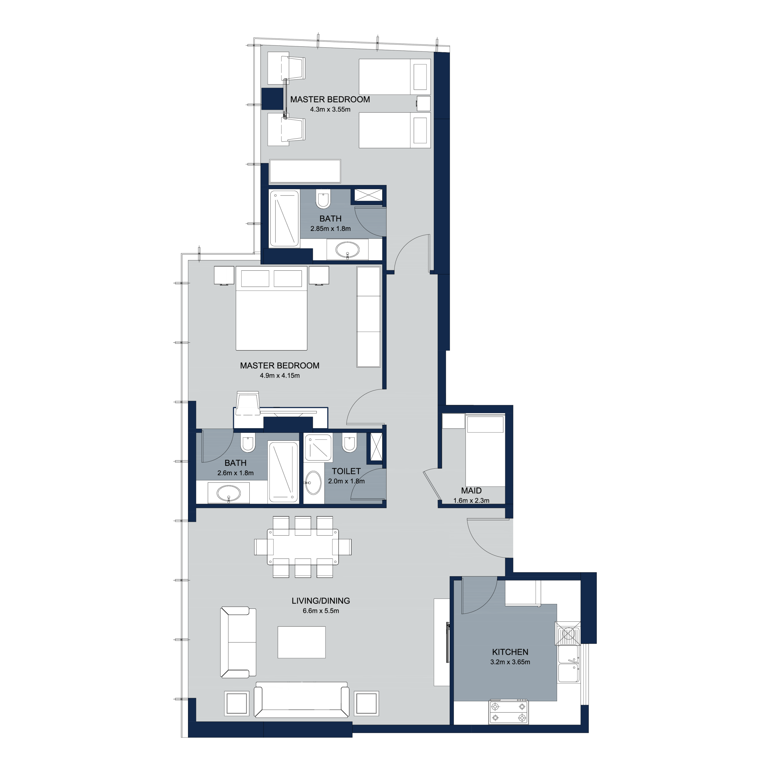 La Plage Tower has 45 floors in total, with 350 residential apartments ranging from 1, 2 and 3 bedrooms plus duplex apartments. Some of these units are built with large terraces. It also holds 2 commercial shops and 17 office spaces. Tower amenities include spacious parking slots, swimming pool for both kids and adults, separate gym for gents and ladies furnished with new and modern equipment. The tower is equipped with 24/7 security staff to monitor safety of the premises and its residents.
