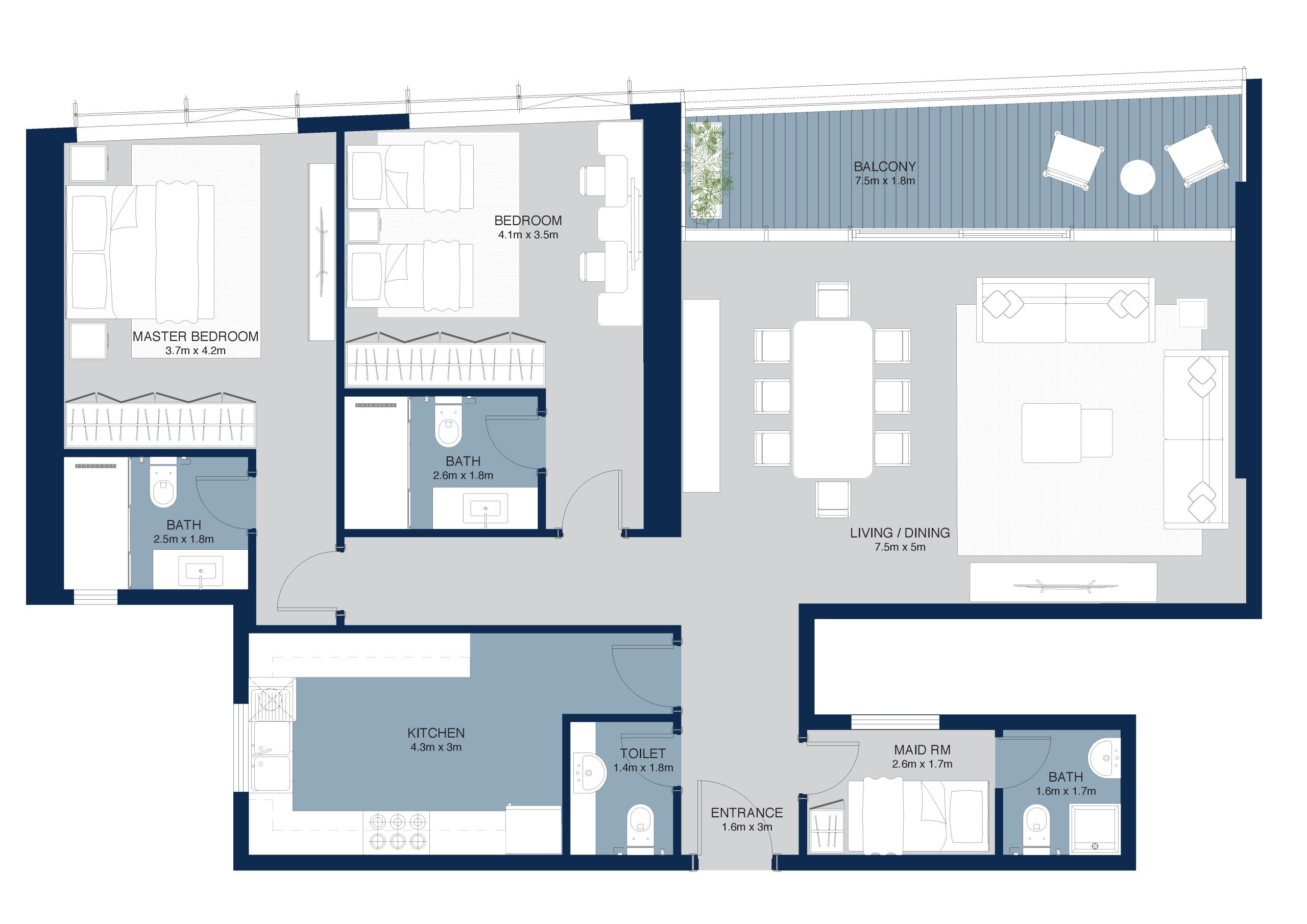 With a spacious layout and closed kitchen, this 2-bedroom apartment from 9th – 31st floors offers both privacy and openness, it is perfect for family living. Enjoy the panoramic city views from the expansive living room.