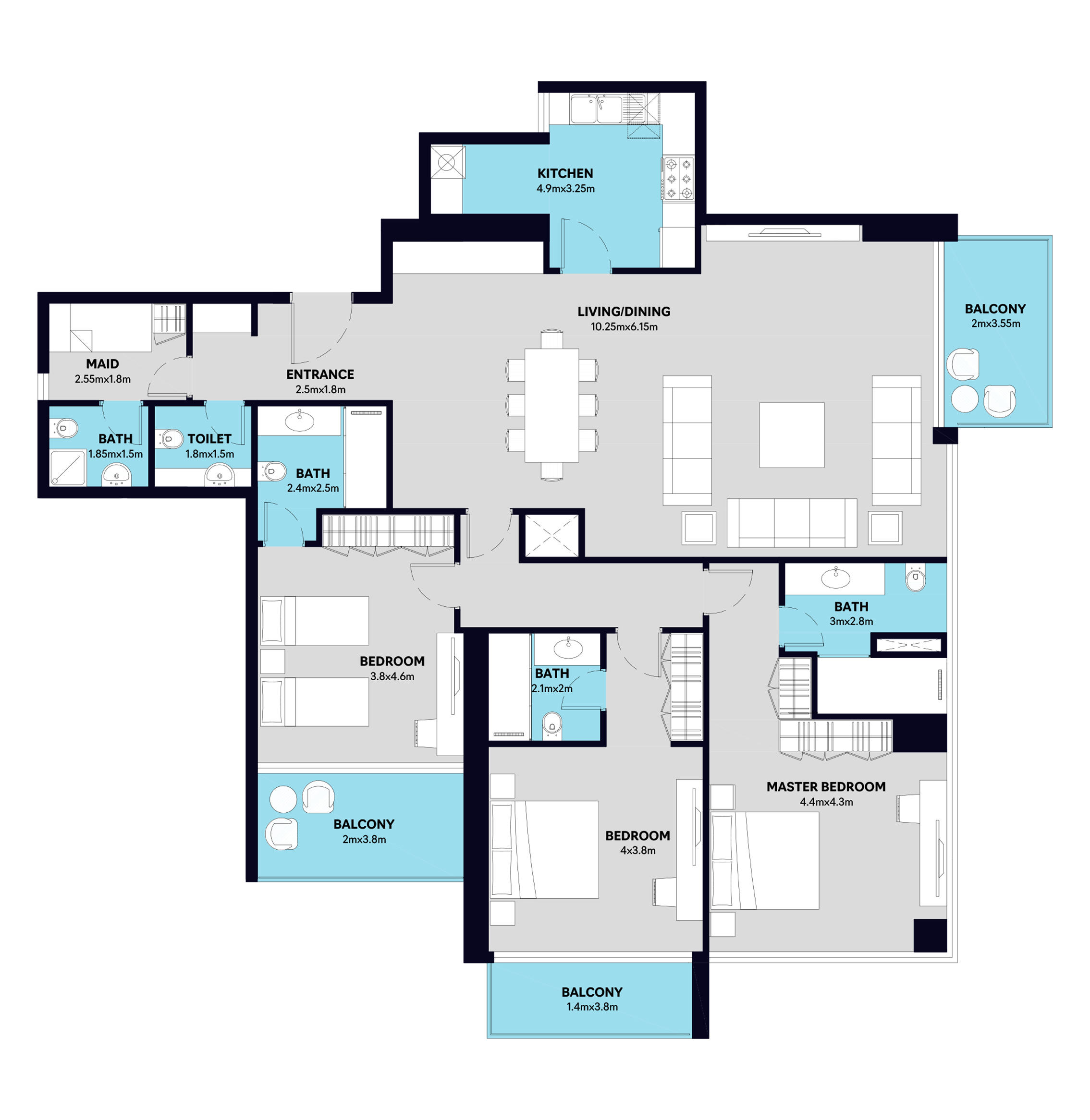 This 3-Bedroom Penthouse Type 11 at S1 Tower in Sharjah is designed for luxury living, combining spacious interiors, multiple balconies, and panoramic waterfront views. Perfectly located in Al Mamzar, Sharjah, this residence is only minutes from Dubai, making it ideal for families and investors looking for luxury waterfront apartments in Sharjah.