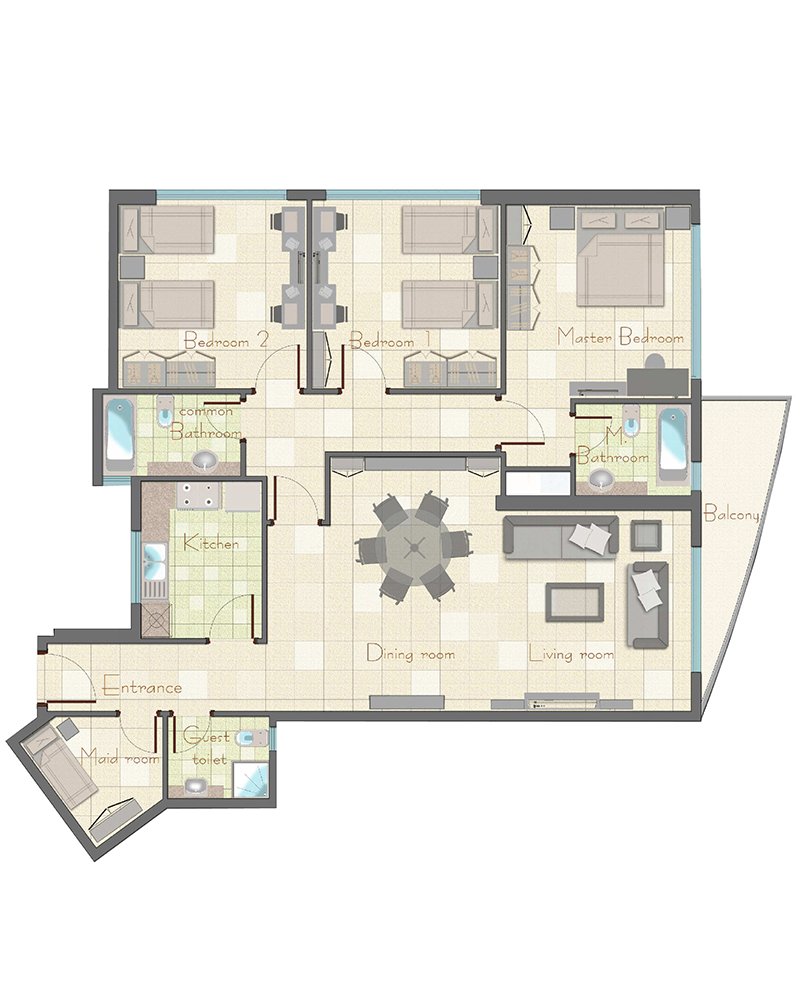 The tower comprises 5 parking floors and 15 residential floors. It has a total of 150 stylish apartments offered in 1, 2 and 3-bedroom configurations with individual areas ranging from 850 to 1,940 square feet. The tower is designed with a modern lobby, a fully equipped gymnasium and swimming pool.
