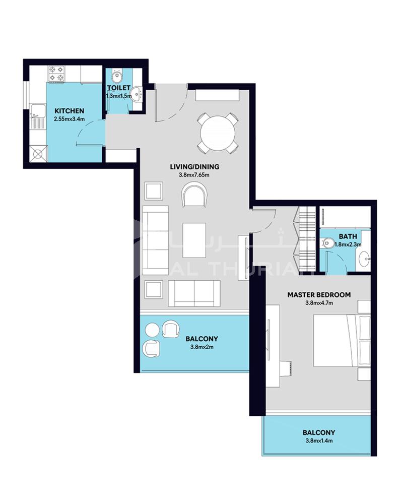 The Type 13 floor plan at S1 Tower features a spacious and elegant 1 bedroom apartment in Sharjah, thoughtfully designed with open living areas, private balconies, and a functional layout. Ideal for singles, couples, or investors, this home delivers the perfect balance of comfort and style in one of the most desirable residential towers in Sharjah.