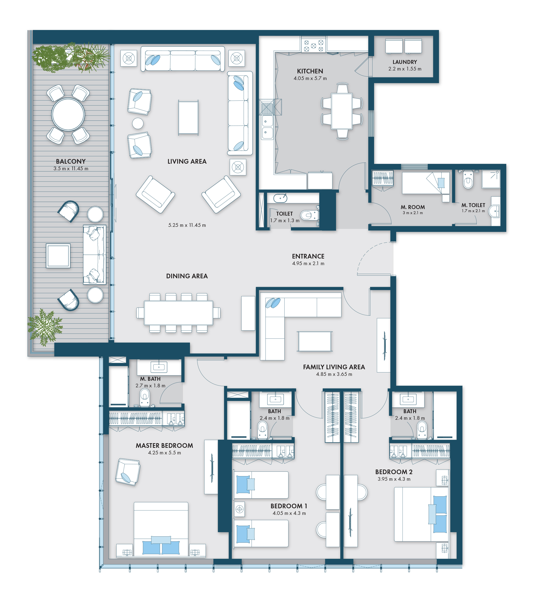 The Type 4 floor plan at Almaza Tower presents a spacious 3 bedroom luxury apartment in Sharjah, perfect for families seeking comfort, privacy, and waterfront living. With a smart layout that combines expansive living areas, private bedrooms, and a large balcony, this residence offers one of the best opportunities for real estate investment in Al Khan, Sharjah.