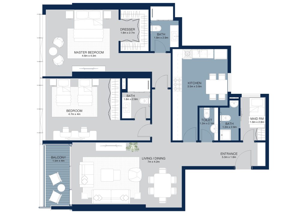 1BR – Type 3 | Type 4